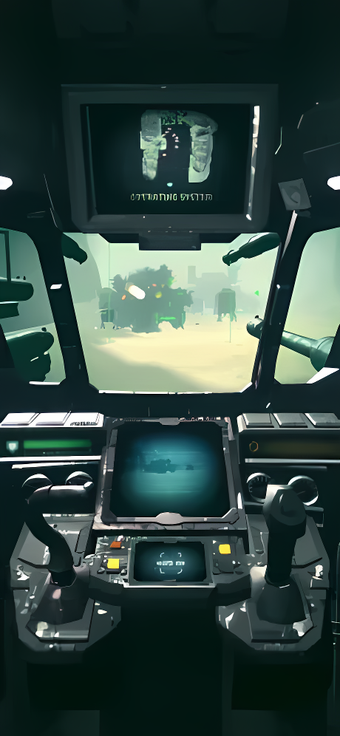 Voor de interface gebruik je alleen je touchscreen om te interageren met verschillende objecten voor je. Sleep en schuif de joystick om de machine te laten lopen, rennen en draaien. Je hebt een paar knoppen die je toegewezen wapens inzetten. Naast de enorme voorruit voor je, zijn er ook een paar schermen die relevante informatie verstrekken.